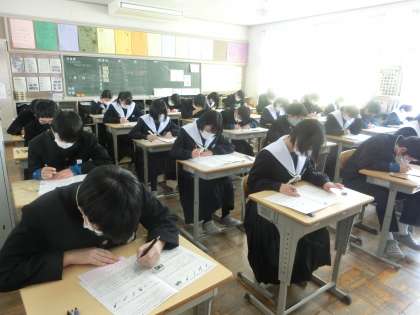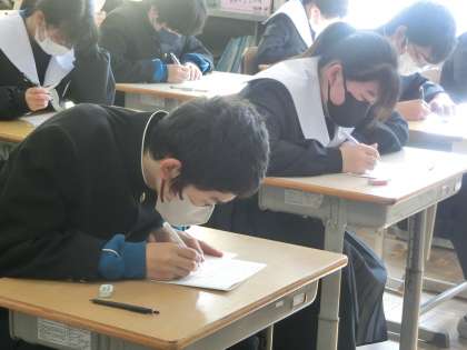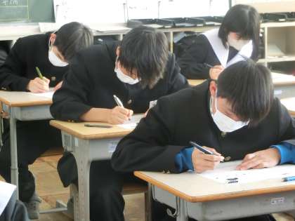 全力で取り組んできた定期テストも本日が最終日。学年を締めくくるにふさわしい取組であったか、学習の方法には問題なかったかなど、今後に生きる振り返りをしてほしいと思います。