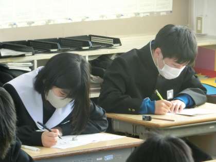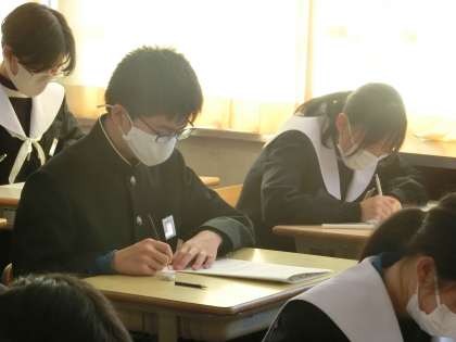2年4組の第4回定期テスト最終日の様子です。