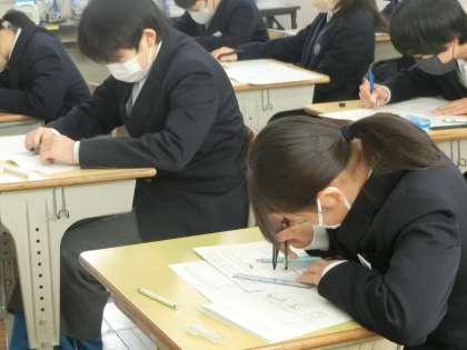 1年1組の第4回定期テスト最終日の様子です。