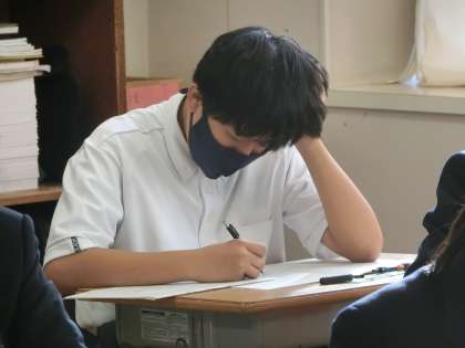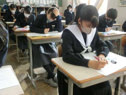 1年2組の第4回定期テスト最終日の様子です。