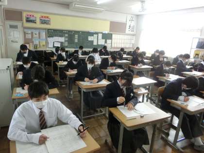 1年4組の第4回定期テスト最終日の様子です。