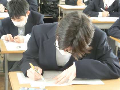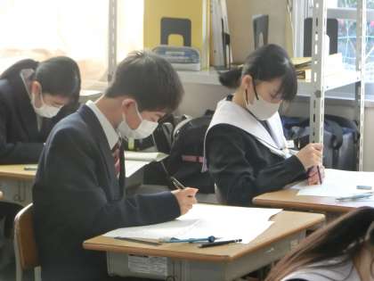 1年4組の第4回定期テスト最終日の様子です。