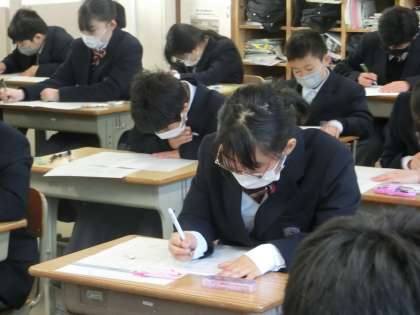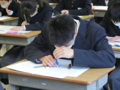 1年4組の第4回定期テスト最終日の様子です。