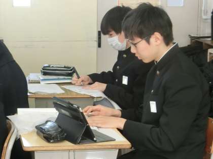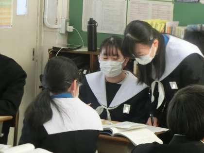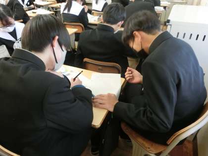 中学校生活最後の課題となるレポートづくりに励んでいました。仲間と熱心に意見を交わし、よりよいレポートにしようと努力していました。