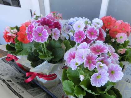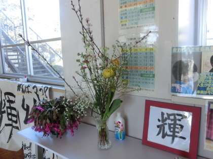 午後に行われる謝恩会のために、各教室の前には鉢花が用意されていました。また、昇降口の花も生け替えられ、感謝の気持ちをしっかり込めているように見えました。