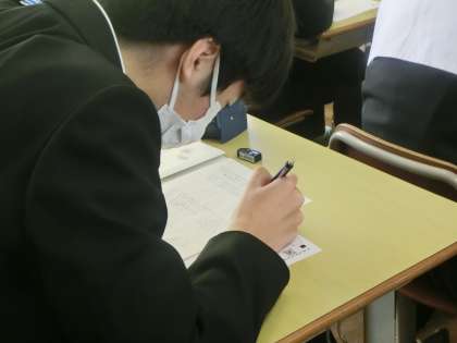 入試対策として、様々な問題に挑戦していました。まずは自力で解き、このあと仲間同士での教え合いになります。緊張と緩和を1時間の中でバランスよく使い分けているため、高い集中力を維持できているようです。