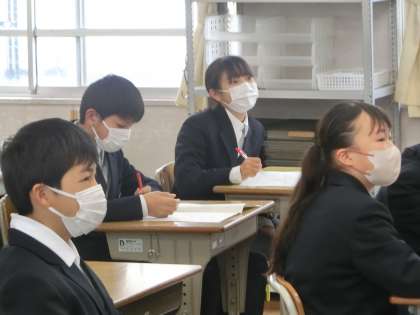定期テストの返却・解説が行われていました。理解の不十分だった問題をしっかり解き直し、確実に身につけてほしいと思います。