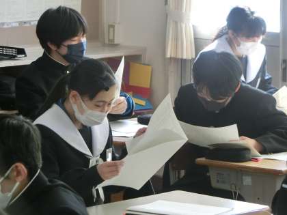 定期テストの返却・解説が行われていました。努力の結果が表情に表れているようです。
