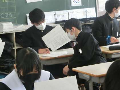 定期テストの返却・解説が行われていました。努力の結果が表情に表れているようです。