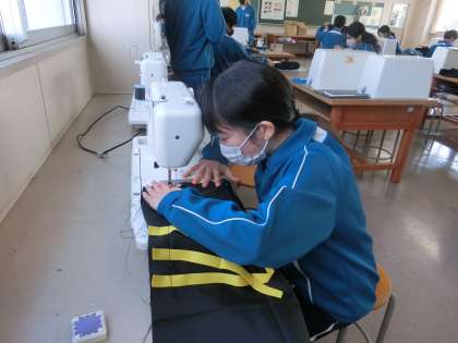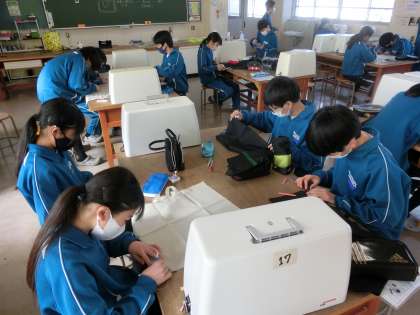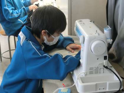 裁縫の学習で「エコバッグ」の製作に取り組んでいました。回を重ねるごとに上達してきたミシンの操作。それぞれが一人で活動を進めていけるようになってきました。