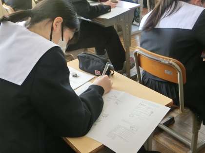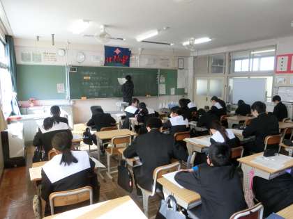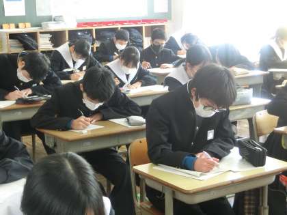 定期テストの返却・解説が行われていました。理解の不十分だった問題をしっかり解き直し、確実に身につけてほしいと思います。