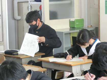 定期テストの返却・解説が行われていました。理解の不十分だった問題をしっかり解き直し、確実に身につけてほしいと思います。