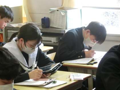 2/10 3-5 自分に合った勉強法で… 2 公開日 2024/02/11 更新日 2024/02/11 各学年から 昨日の3年5組の社会の授業の様子です。 入試対策に取り組んでいました。学習用タブレットやテキスト、プリントなどを使って各自が学習に励んでいました。