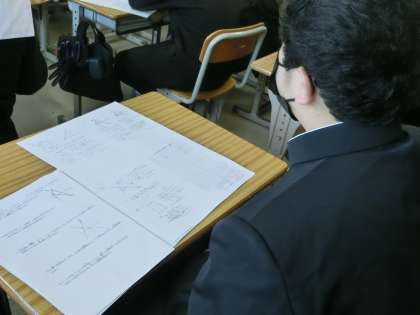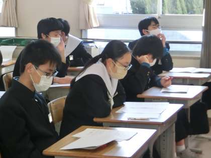 定期テストの返却に合わせて、正答率の低かった問題を中心に解説が行われていました。単に正解を確認するのではなく、途中の考え方はどうだったのかを思い出しながら、解き直しに取り組んでいました。