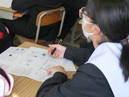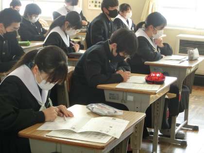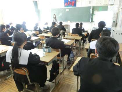 定期テストの返却と解説が行われていました。来年の入試を見据え、テストが終わるたびに見直しを確実に行ってほしいと思います。