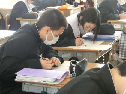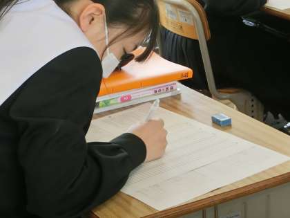 2年生で学習した内容の総復習に取り組んでいました。一年間の学習のまとめのプリンtに真剣に取り組んでいます。入試を見据えた学習のスタイルも確立していってほしいと思います。