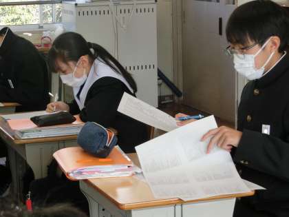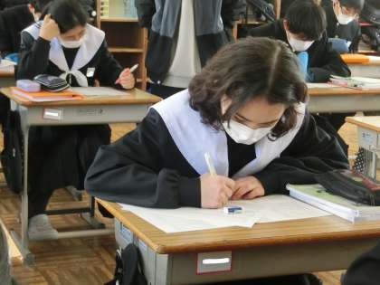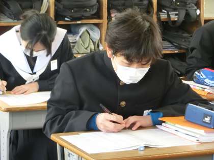 2年生で学習した内容の総復習に取り組んでいました。一年間の学習のまとめのプリンtに真剣に取り組んでいます。入試を見据えた学習のスタイルも確立していってほしいと思います。