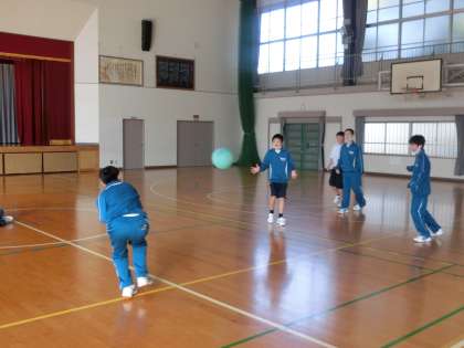 歓声を体育館中に響かせ、ドッヂボールに取り組んでいました。やわらかいボールを使用しているため、思いっきり投げ、怖がらずに受けにいっています。