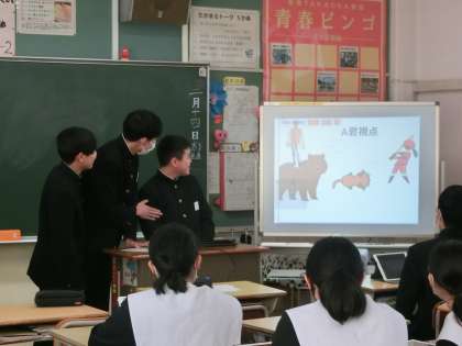 これまで学習に取り組んできた「近未来メッセージアプリ」について、いよいよ発表の日を迎えました。現在のメッセージアプリの改善案やアイデアをプレゼン形式で発表していきます。近い将来、生徒たちのアイデアが現実の世界でも当たり前になるかもしれませんね。