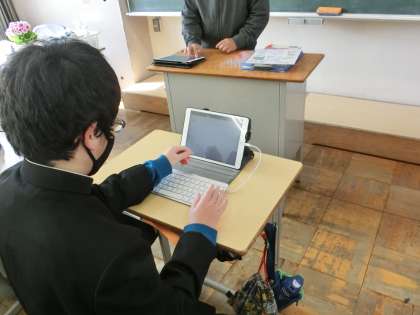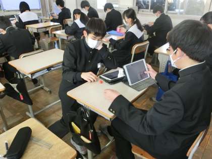 確率の学習で、実際にサイコロを振って、出る目の回数をタブレットの表に入力していきます。地道な活動でしたが、一生懸命取り組んでいました。