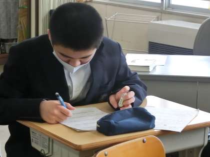 各自の課題に取り組んでいました。積極的に仲間や教科担任に質問に行っています。なかなか答えにたどりつけない問題でも、挑戦しようとしている姿に感心しました。