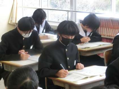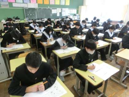 入試を終えた生徒は中学校生活のまとめのテストとして、これから本番を控えている生徒は自信をもって入試に臨むためのテストとして、それぞれが目的意識をもって取り組んでいました。