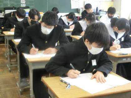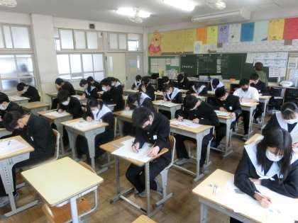 入試を終えた生徒は中学校生活のまとめのテストとして、これから本番を控えている生徒は自信をもって入試に臨むためのテストとして、それぞれが目的意識をもって取り組んでいました。