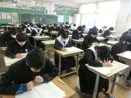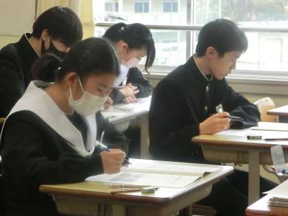 入試を終えた生徒は中学校生活のまとめのテストとして、これから本番を控えている生徒は自信をもって入試に臨むためのテストとして、それぞれが目的意識をもって取り組んでいました。