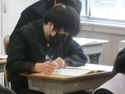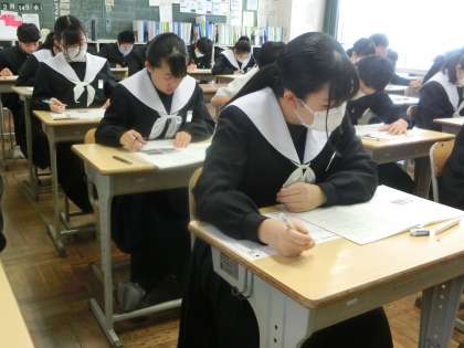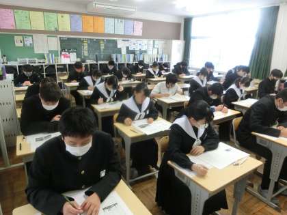 入試を終えた生徒は中学校生活のまとめのテストとして、これから本番を控えている生徒は自信をもって入試に臨むためのテストとして、それぞれが目的意識をもって取り組んでいました。