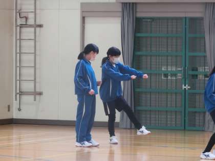 昨日に引き続きグループに分かれ、オリジナルのダンスづくりに取り組んでいました。昨日はなかなか動き出せなかった生徒たちでしたが、今日はノリノリ。この調子でパフォーマンスの上達をめざしてほしいと思います。