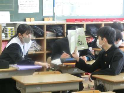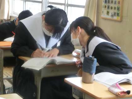 「空気中の水蒸気の量と湿度の計算をしよう!」をテーマに学習が進められていました。しっかり理解し、自分で立式できなければ意味がないことをよく知っています。そのため、仲間や教科担任に積極的に質問していました。