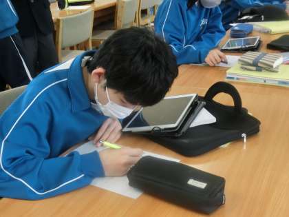 ビブリオトークの学習に入り、今回は図書館での紹介本探しでした。人にその本の良さを伝えるためには、まず自分がその本のおもしろさを実感する必要があります。そのため、本探しも慎重です。