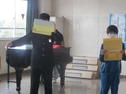 給食後の放課、3年生の教室から最も遠い教室で、合唱の練習が始まっていました。3月1日に開催される「3年生を送る会」に向けてです。
