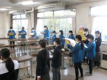 給食後の放課、3年生の教室から最も遠い教室で、合唱の練習が始まっていました。3月1日に開催される「3年生を送る会」に向けてです。