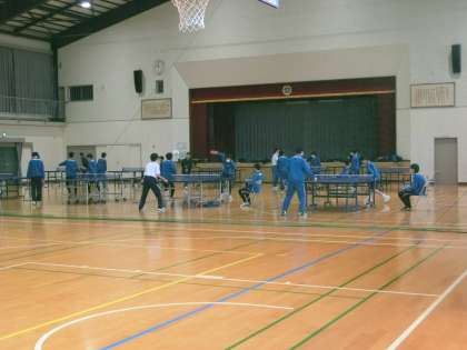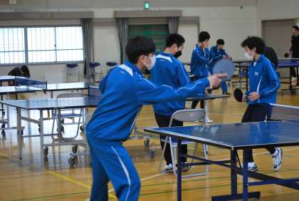 写真は、卓球部の活動の様子です。ランキング戦が行われていました。