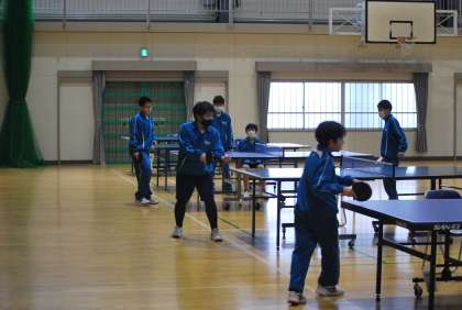 写真は、卓球部の活動の様子です。ランキング戦が行われていました。