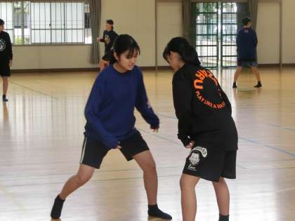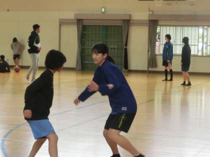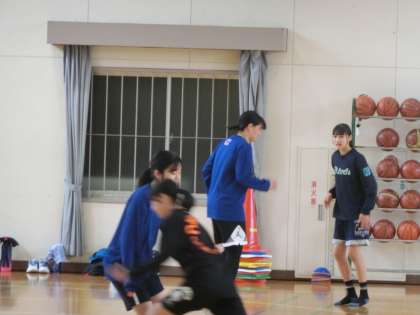 写真は、バスケットボール部の活動の様子です。梅坪台中学校との練習試合、浄水中学校との合同練習・クリニックが行われました。