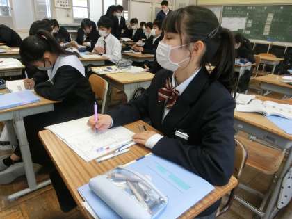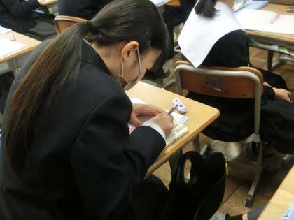 「円錐の表面積を求めよう」をテーマに学習が進められていました。正確に求めるための方法を仲間と考えていました。
