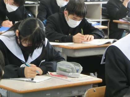 確率の学習に入っていました。まずは樹形図を使って、考えられるパターンを書き出していきます。次第にパターンの数が多くなっていったときに、どういった考え方をすると解けるのか、その基礎を学んでいました。