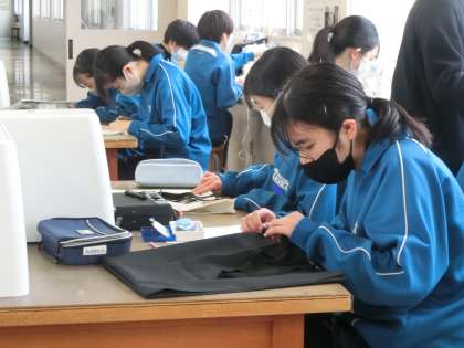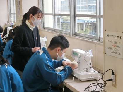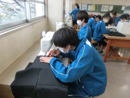 裁縫の学習で「エコバッグ」の製作に取り組んでいました。回を重ねるごとに上達してきたミシンの操作。それぞれが一人で活動を進めていけるようになってきました。