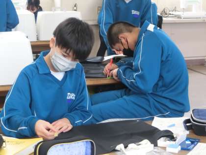 裁縫の学習で「エコバッグ」の製作に取り組んでいました。回を重ねるごとに上達してきたミシンの操作。それぞれが一人で活動を進めていけるようになってきました。
