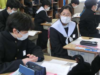 「君は『最後の晩餐』を知っているか」の学習で、「三つの科学について詳しく知り、比喩表現も見つけよう」をテーマに学習が進められていました。