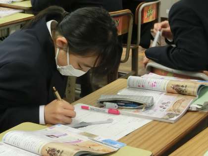 1年3組の社会・歴史分野の授業の様子です。
