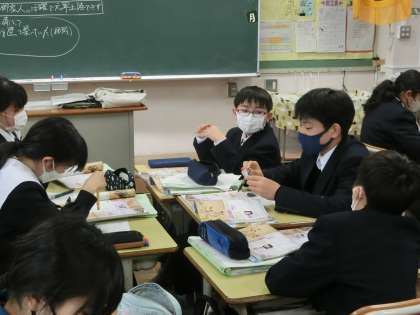 「モンゴルの襲来は日本にどのような影響を与えただろうか」をテーマに学習が進められていました。その中で「鎌倉幕府の衰退(滅亡)」という言葉ができてきました。そこで次のテーマ「鎌倉場う句はなぜ滅んだか」にテーマが変わり、グループで話し合った意見を積極的に発表していました。