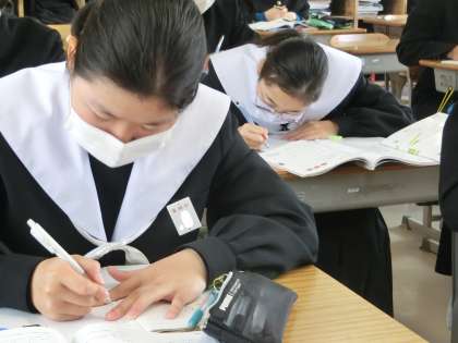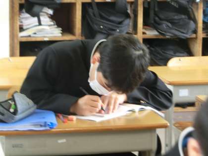 確率の学習に入っていました。まずは樹形図を使って、考えられるパターンを書き出していきます。次第にパターンの数が多くなっていったときに、どういった考え方をすると解けるのか、その基礎を学んでいました。