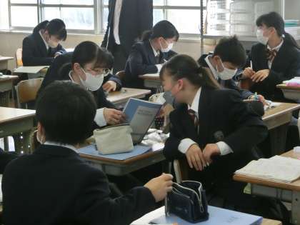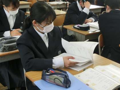 立体の体積や表面積を求める演習問題に取り組んでいました。立体といっても単純な形ではありません。しっかりとその形をイメージして、正確に答えを導き出していきます。
