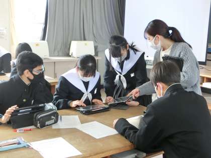 「自分に合ったクレジットカードはどれ?」をテーマに、カードのメリットや使用時の注意点をグループで意見を出し合っていました。最後は各グループの発表から、場所や部面を想定しながら「お得だな」「使ってみたいな」と思うものを選んでいました。