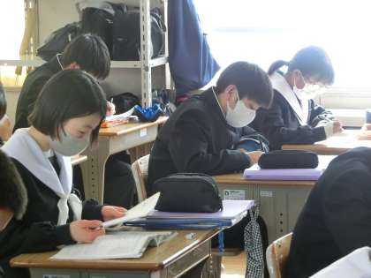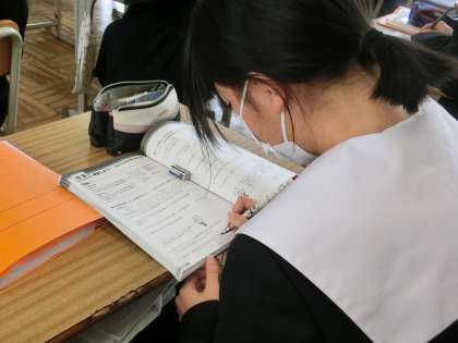 天気の変化の単元で、「湿度を求める計算問題にチャレンジしよう」をテーマに学習が進められていました。さまざまなパターンの問題を自力で解いていきます。公式に当てはめるだけでは答えにたどりつけない問題をあります。単位に注意したりしながら、しっかりと解き方を身につけてほしいと思います。