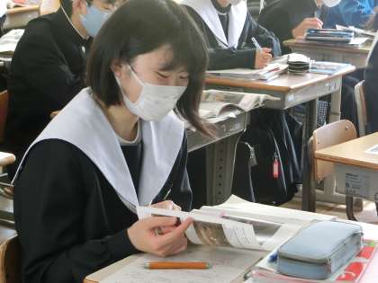 「君は『最後の晩餐』を知っているか」の学習で、「三つの科学について詳しく知り、比喩表現も見つけよう」をテーマに学習が進められていました。