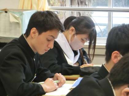 明日の公立高校一般入試に備え、最後の追い込みです。私立高校や専修学校に合格している生徒たちも同じ気持ちで取り組み、仲間にエールを送っているようです。